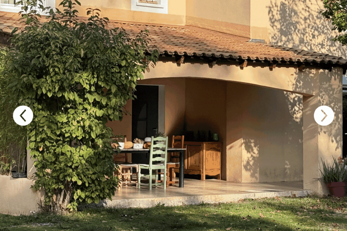 Les extérieurs, pensés pour la convivialité, offrent une large terrasse couverte face à la piscine, un verger soigné ainsi qu’un carport trois places permettant de stationner véhicules et van.