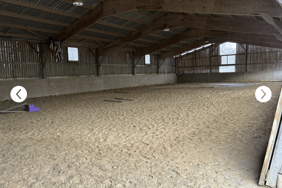 Côté travail, la propriété dispose d’un manège couvert, d’une carrière extérieure et d’un rond de longe, offrant des possibilités d’entraînement variées tout au long de l’année. Des paddocks sécurisés permettent la sortie quotidienne des chevaux, tandis que plusieurs hangars assurent des espaces de stockage adaptés au fourrage et au matériel.